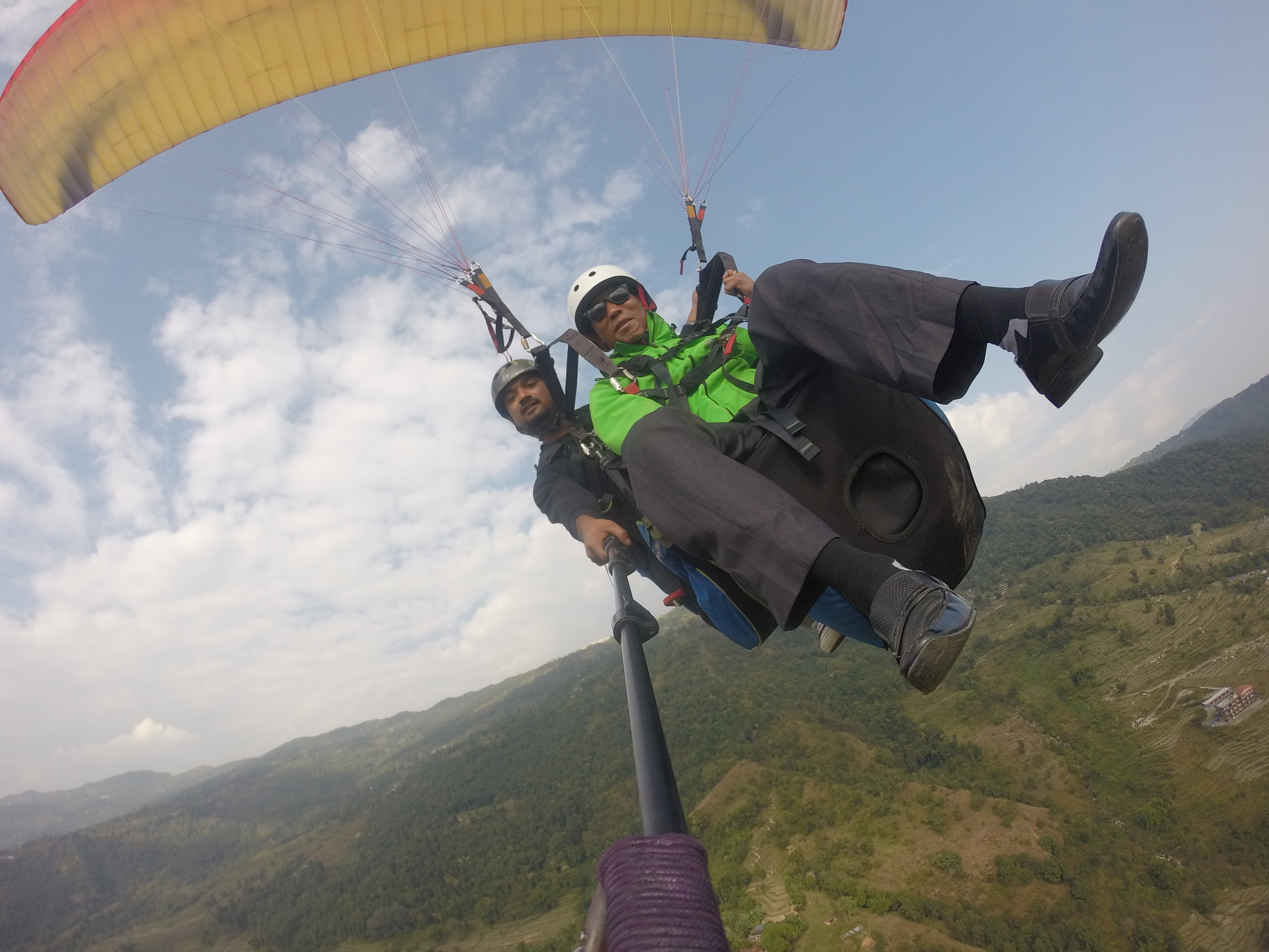 A short walk brings you to the only purpose built take off in the country. Cut out of the slope is a 45m by 45m clearing. The main area for flying in Nepal is the Annapurna region, more specifically the Pokhara valley .